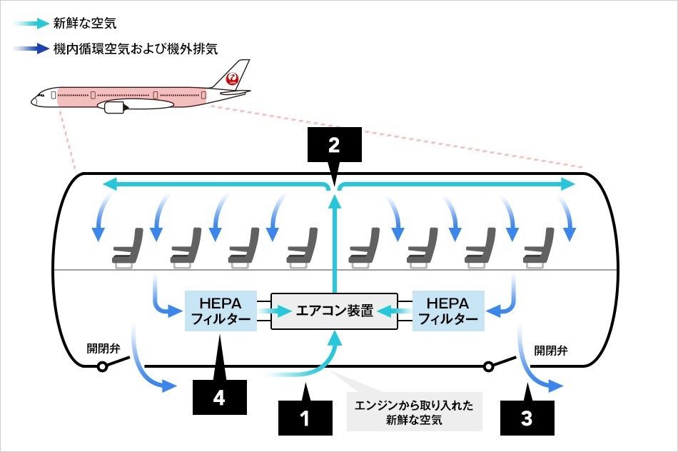 しかし、実は旅客機には飛行中に2~3分で機内の空気を全て入れ替わる仕組みや、空気を清潔に保つための高性能空気フィルターなど、感染を防ぐための高い技術が採用されている。そうした技術は、感染などの予防対策として飛行機以外にも応用されていくと予想している。