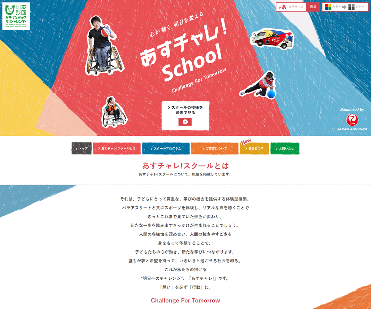 阿川 たとえば、日本財団パラリンピックサポートセンターと共同で実施している「あすチャレ!School」では、全国の小・中学校、高校で、パラリンピックの競技を実際に体験できる出前授業を行っています。パラリンピック競技やパラリンピアンとの触れ合いを通して、子どもたちの障がいへの理解を広げながら、JALと子どもとの接点をつくっています。