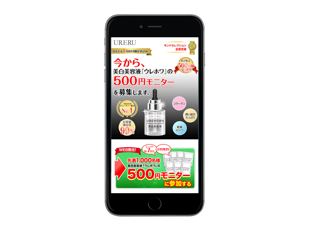 「サンプル」よりも「モニター」が強いというのは、肌感覚としてなんとなくわかるのではないだろうか。「サンプル」だと、その辺で配られているショボい試供品のようなイメージがあるが、「モニター」となるとちょっと特別感があって、特に女性の場合は「私モニター会員よ~♪」という感覚になるので、コンバージョン率だけでなく、その後の引上率やクロスセル率にも良い影響を及ぼすのである。