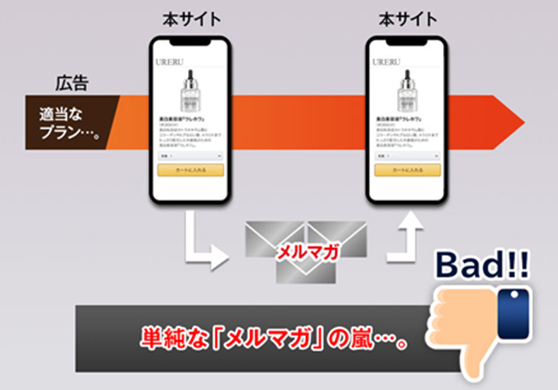 しかも、ほとんどの単品通販(D2C)会社は、メルマガから本サイトに誘導することを何度も何度も繰り返している。