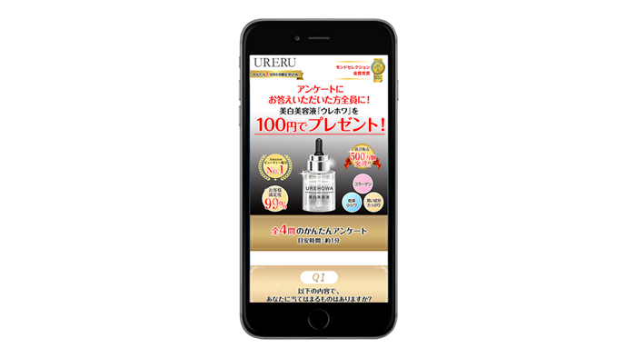 「アンケートランディングページ」とは、一種の心理的ギミックであり、商品を詳細に紹介するかわりに、簡単なアンケートに答えてもらうページになっているのが特徴だ。