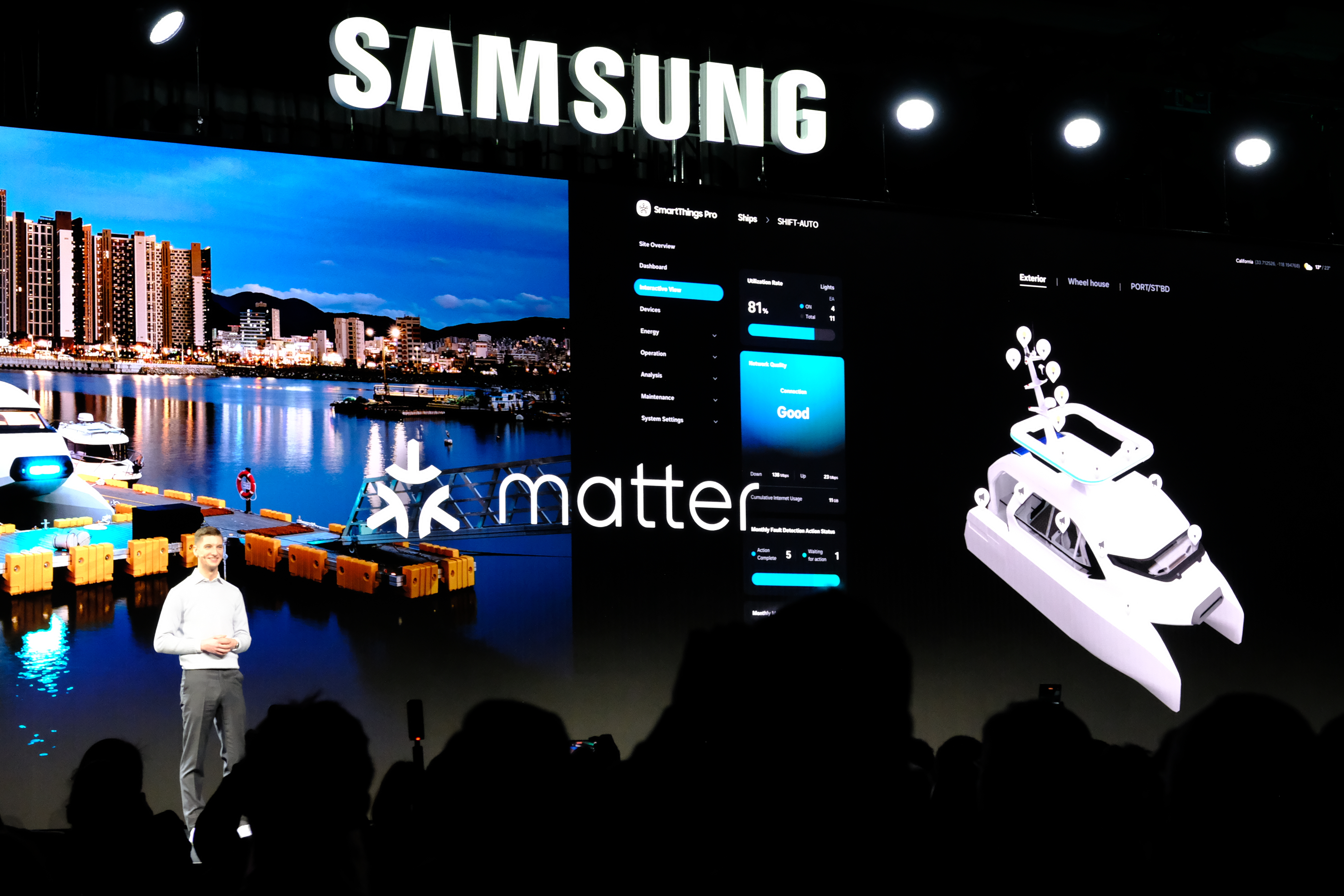 まず言及したのが、SAMSUNGのスマートホームプラットフォームである「SmartThings」です。SmartThingsを基盤に家庭内のあらゆるデバイスを統合し、「Knox Matrix」というセキュリティシステムを活用してデバイス同士が保護し合う仕組みを採用することで、データの暗号化やセキュリティ脅威への迅速な対応が可能になるといいます。