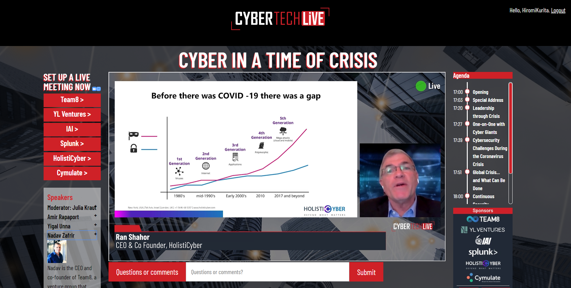 そして4月に入ってから、ビジネスカンファレンスがオンラインで開催されるようになりました。先日は「CYBER TECH」がオンライン開催されたので参加しましたが、リアルタイムで質問やコメントが書き込めて、それを事務局がキャッチアップして、各講演の最後に登壇者に質問していました。