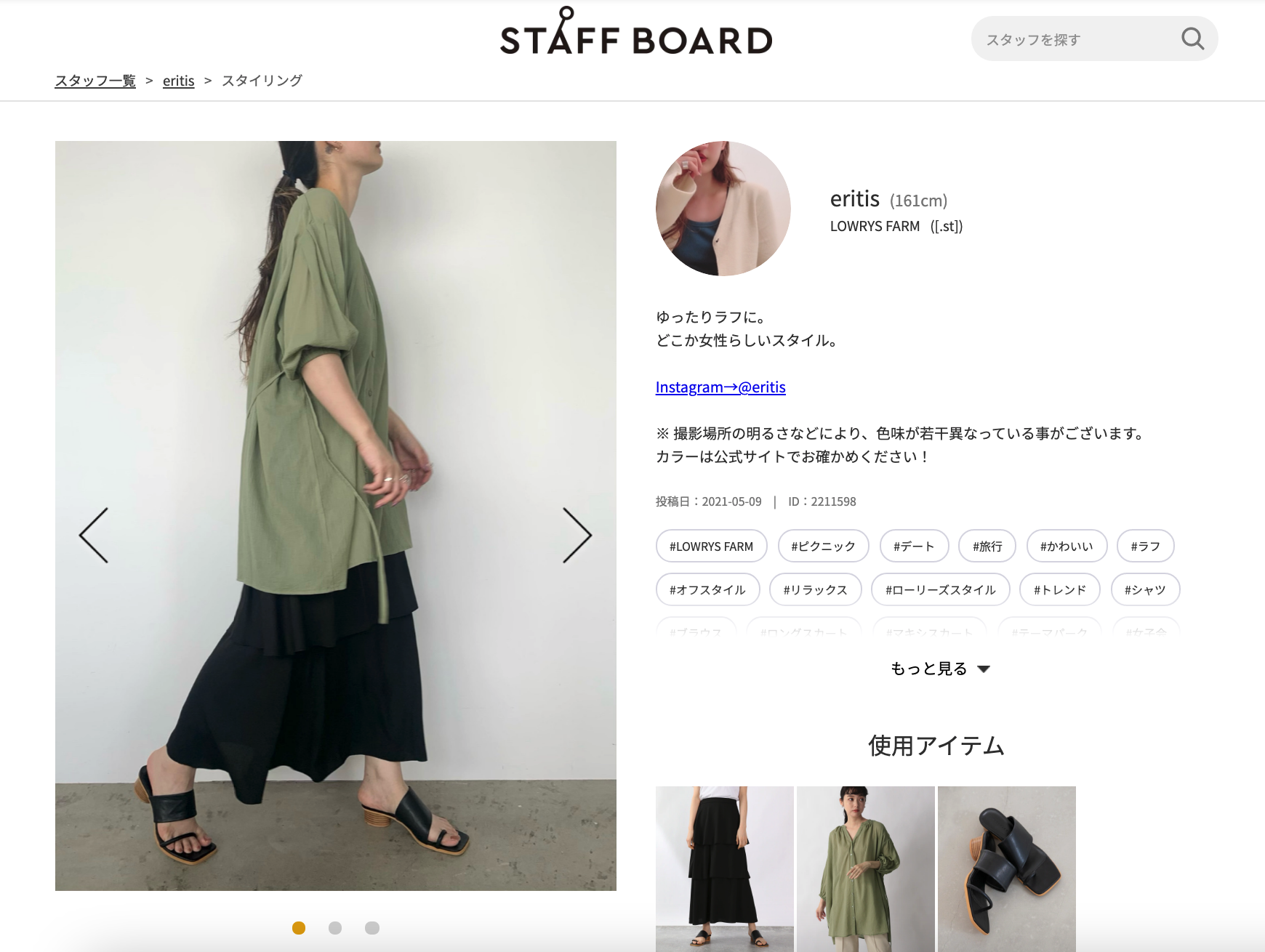 その結果、アダストリアの強みは店舗スタッフだったのです。我われのECサイトである「.st(ドットエスティ)」でも、スタッフボードに添付スタッフの名前を入れてスタイリングをしているのですが、この取り組みのパワーが改めて浮き彫りになりました。