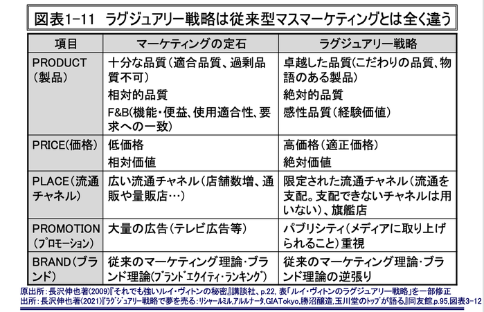 以下がラグジュアリー戦略と従来の手法との違いがまとまった表になります。