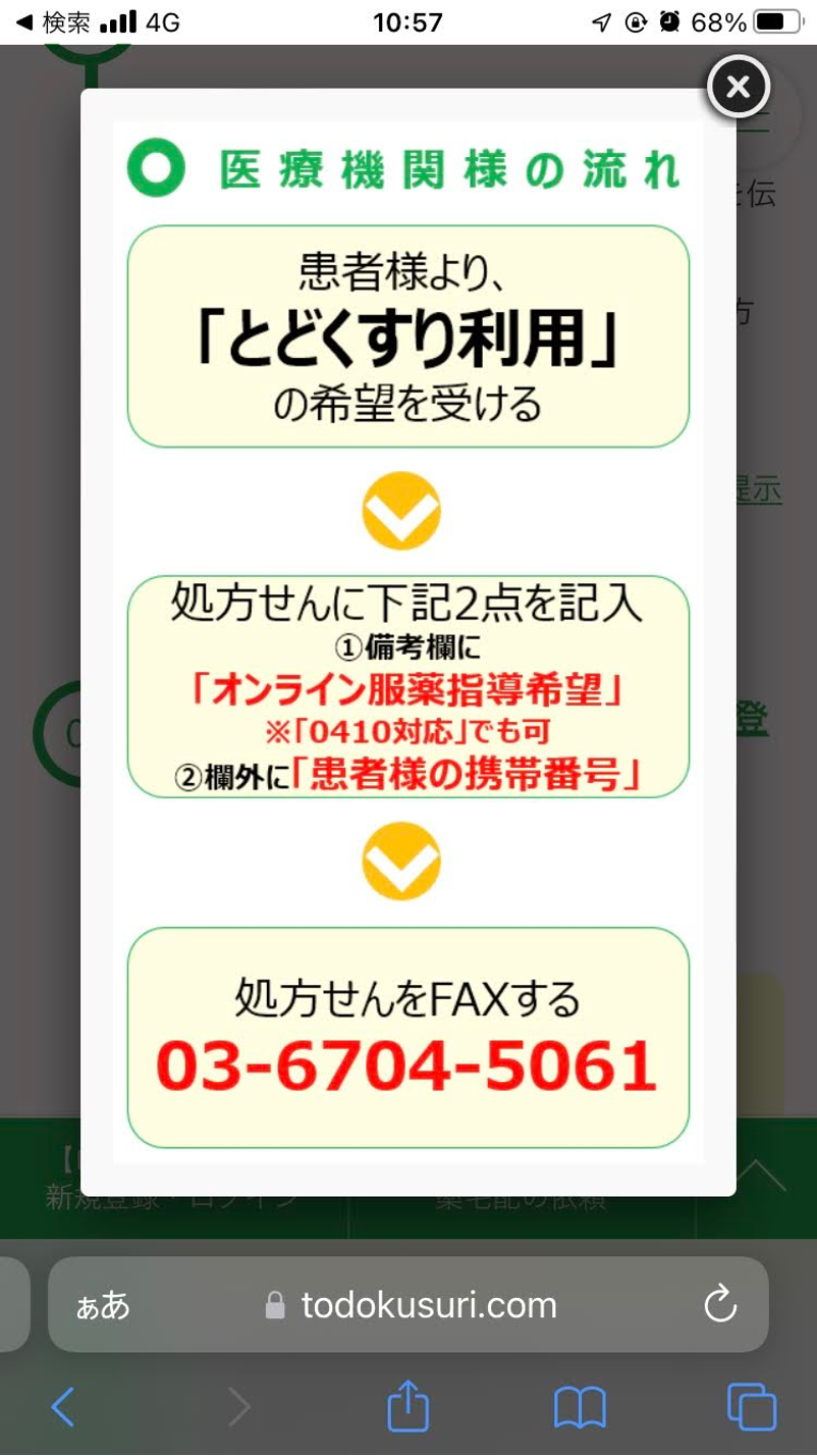 そこで私も診察時、医師に画面を見せながら、処方箋に「オンライン服薬指導希望」と「私の携帯電話番号」を記載してもらいました。また、処方箋のFAXについては、医師に何度か説明した後、受付で実施してもらえることになりました。