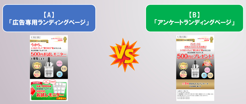 次のうち、コンバージョン率が高いアンケートランディングページはどちらだろうか。