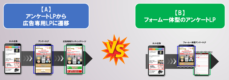 【A】 アンケートランディングページから広告専用ランディングページに遷移