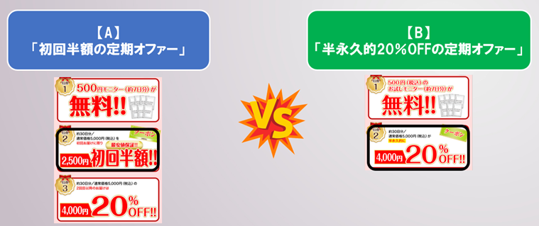 次のうちLTVが高い定期コース(サブスク)のオファー内容はどちらだろうか。
