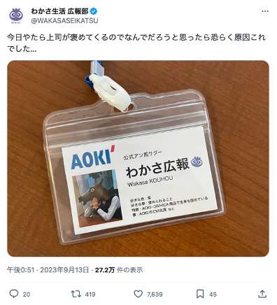 工夫としては、よくある「お昼ご飯で○○食べました」「休みの日にここに行きました」といった、主語が「中の人」個人になっている投稿はしないようにしています。あくまでわかさ生活社内の運営者として、会社をどこかに連想できることを意識しています。