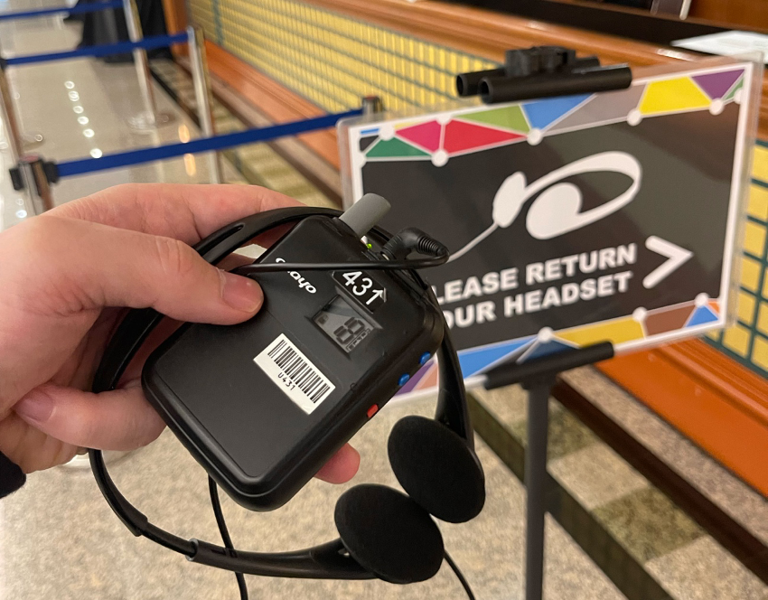 会場で英語から日本語に同時通訳してくれるイヤホンガイド