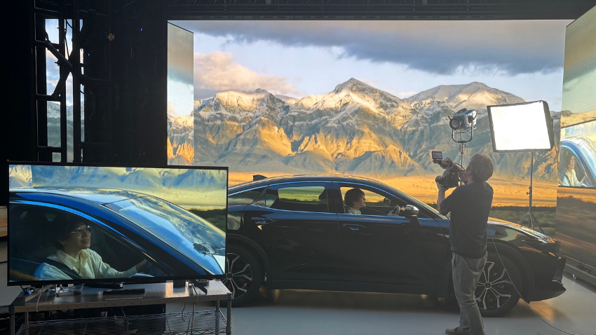 ※1:高精細大型LEDディスプレイに背景アセットを投影し、その前に被写体(人物・クルマなど)を配置することで、実際にその場所で撮影されたものと遜色ない映像表現が可能な撮影システム