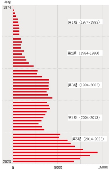 1974年度~2023年度の受付件数の推移