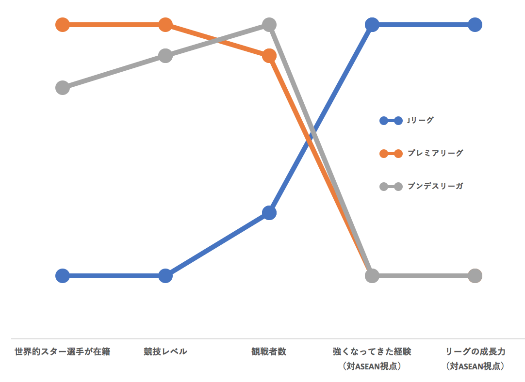 しかし、そのとき気づいたのは、裏を返せば日本は1960~70年代、タイやマレーシアなどアジア各国より弱かったにも関わらず、Jリーグ誕生をきっかけに急激に成長したということです。世界でも短期間でこれだけの成長曲線を描いた国はありません。アジアという括りでJリーグを見ると、そのノウハウを提供できるのではないかと気づいたとき、弱みが強みに変わり、視界がパッと開けた感覚がありましたね。
