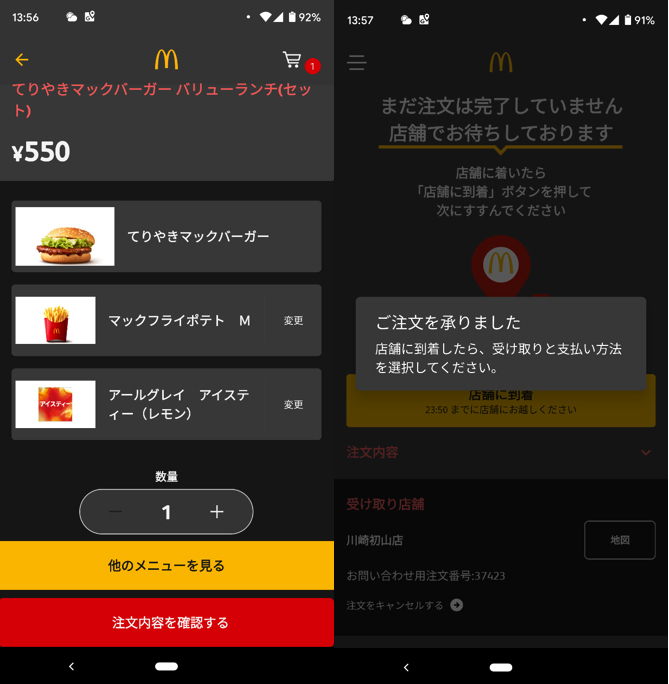 - マクドナルド モバイルオーダーの流れ