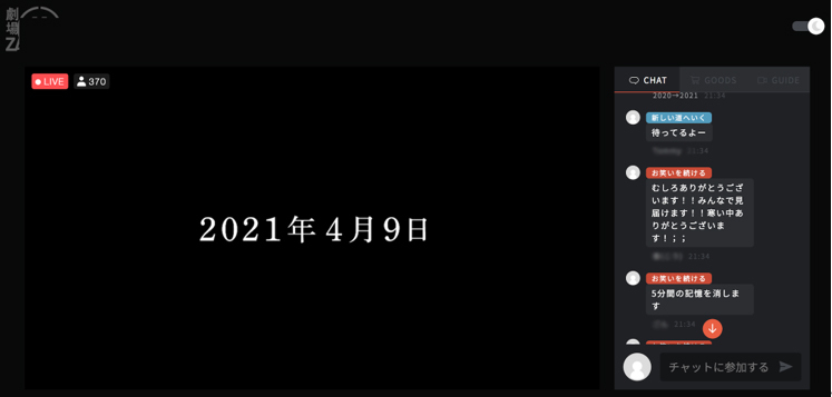 当然、観客は「あれ?どうした?」「聞こえないよ?」とチャット上で会話をします。ここで、運営からアナウンスが入り、このシーンが1からやり直しになります(俳優さんも、スタッフさんもお疲れさまです)。この一連の流れで5分程度中断しましたが、この間のチャットがこの画面です。