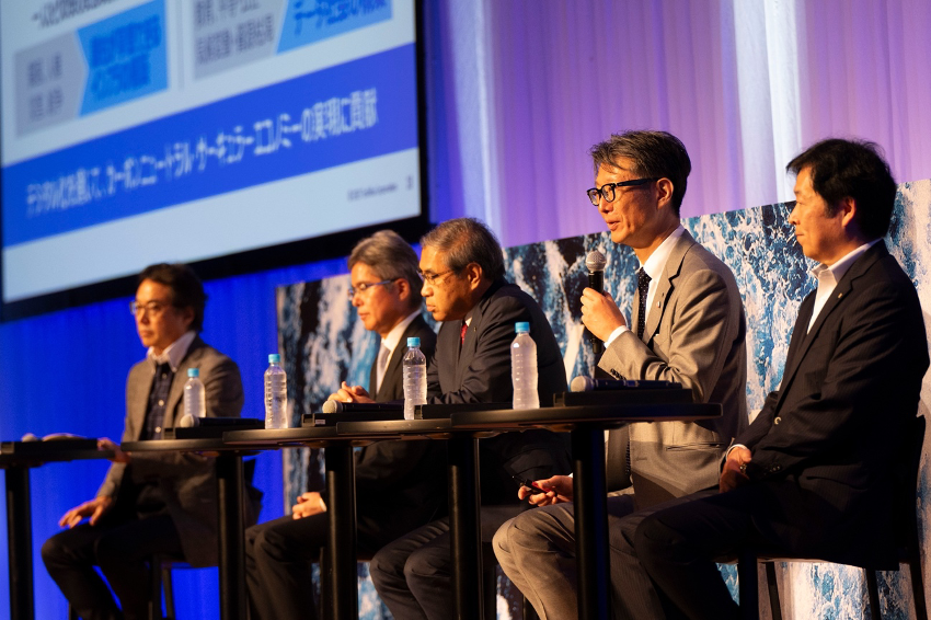 今回、最も注目されたキーノートは「2030年に向かうCEOの視座~ビジョン、パーパスとその実行~」というテーマで、東京ガス 取締役代表執行役社長 CEOの笹山晋一氏、東芝 取締役 代表執行役社長 CEOの島田太郎氏、東日本旅客鉄道 代表取締役社長の深澤祐二氏、電通 代表取締役 社長執行役員の榑谷典洋氏がスピーカーとして登壇し、CDO CLUB JAPAN 代表理事&創立者の加茂純氏がモデレーターを務めた。