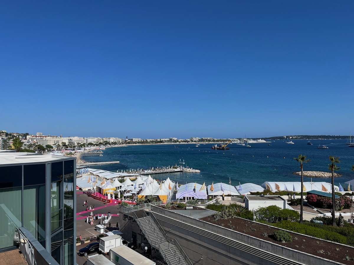 メイン会場上層階からの、カンヌビーチの眺め。