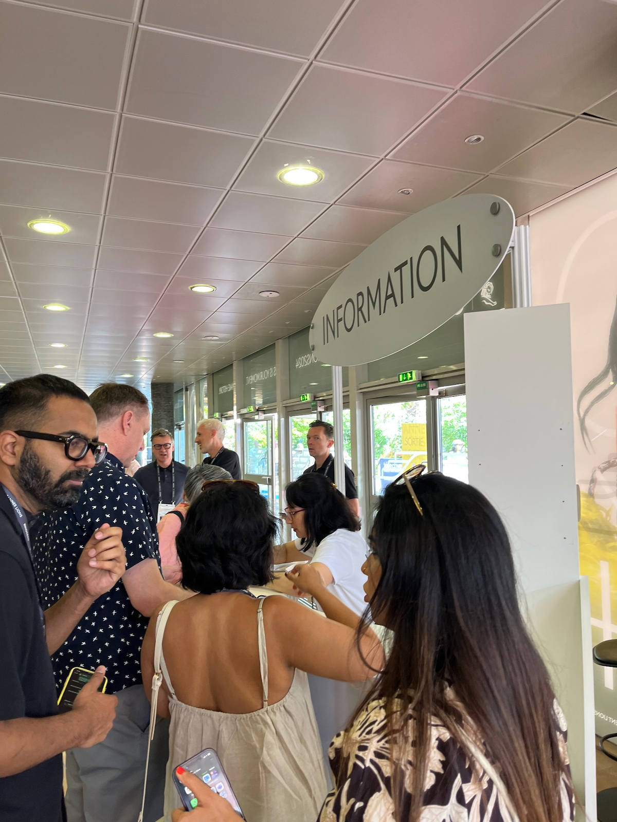 セミナーに並ぶ列は例年よりも長く、ゴールドやグランプリへの拍手や歓声は大きく、受賞した人々の贈賞式後の喜びの爆発も、例年に増して大きいと感じました。また、会場は大混雑で、インフォメーションの前にも人の山。初めて訪れている参加者が多いのかもしれません。カンヌライオンズを経験する人がひとりでも増えるのは、筆者としてはとても良いことだ感じています。
