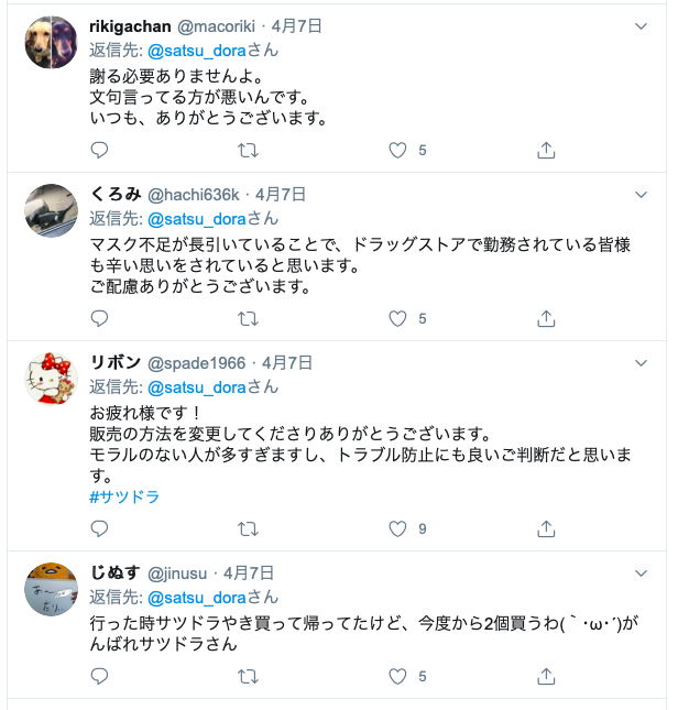 今回のテーマを執筆するきっかけになったのは、アジェンダノートでもお馴染みの郡司昇さんがFacebookで紹介していた、サツドラ公式Twitterが投稿した、マスク販売の開店時中止を告知するツイートだった。