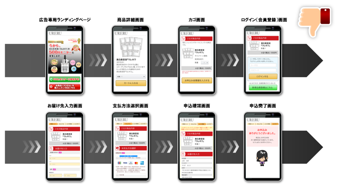 ぶっちゃけてしまえば、広告専用ランディングページとカートシステムの相性は最悪である。その理由は、カートシステムの遷移数にある。