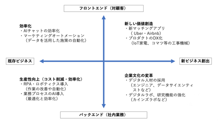 昨年12月に開催されたリテール領域のカンファレンス「リテールアジェンダ」では、DXについて次のように四象限でマッピングし、各社が何から優先的に取り組み、何をする・しないという判断をしているのか聞きました。