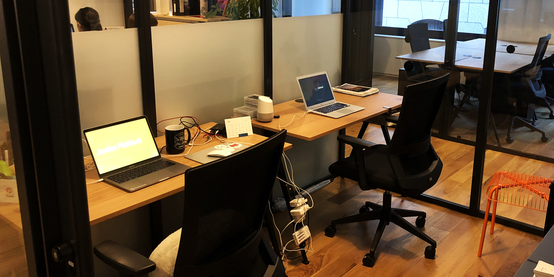 そして2018年2月に日本で最初の拠点となる「WeWork Ark Hills South(六本木一丁目)」の開設にあわせて、ホットデスク会員としての利用をスタートし、その後サインコサインの設立(2018年4月2日)と同日に開設された「WeWork Shimbashi」を活動拠点として本格的に利用し始めました。