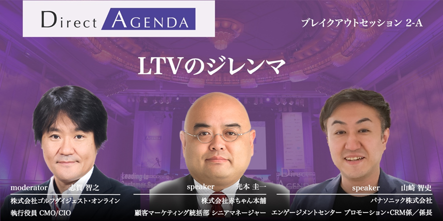 今回は、パナソニック エンゲージメントセンタープロモーション・CRM系/係長の山崎智史氏、赤ちゃん本舗 顧客マーケティング統括部 シニアマネージャーの光本圭一氏、ゴルフダイジェスト 執行役員 CMO/CIO志賀智之氏が登壇。業界や商品・サービス、ターゲット、集客チャネルなどが異なる3社が、LTVにどのように向き合い、向上のための施策を打っているのか。LTVを軸に各社の現状と今後を徹底議論します。