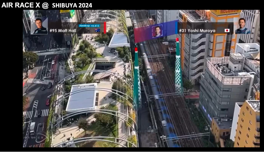 さらに2024年10月には「空のF1」と呼ばれるAIR RACEを都市型XRスポーツに進化させた「AIR RACE. X」を、渋谷の商業施設でバーチャル観戦できるイベントが開かれました。AIR RACEは、以前は実際に世界中からパイロットが集まってレースを開催していたのですが、コロナ禍を経て2023年からはパイロットがそれぞれの場所で飛行し、その飛行データを集約してチャンピオンを決める方式になりました。リアルで集まっていた頃は、衝突の危険があるため飛行機は一機ずつ飛んでいましたが、バーチャル空間ではデータを掛け合わせることで同時に飛んでいるように見せられます。お客さまが渋谷PARCOの吹き抜けでApple Vision Proを付けたり、MIYASHITA PARKの屋上にある観戦会場でスマホをかざしたりすると、渋谷のビル街のど真ん中を複数の飛行機が同時に飛び交う迫力のレースを観戦することができるのです。