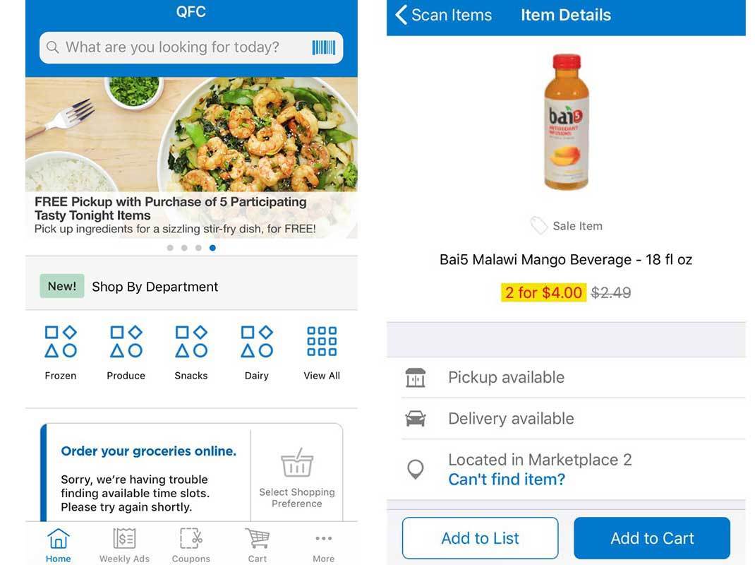 クローガー(子会社QFC)の会員アプリと連携することで、初めて買い物リストを取り込み、売場案内機能が使えます。