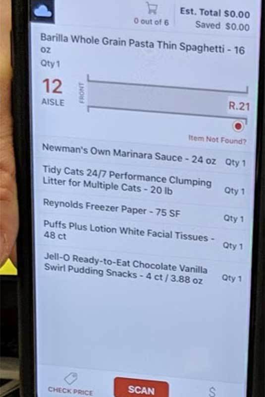 ③リストの上から順番にどの通路のどの棚に商品があるか表示されるので、売場まで歩く。