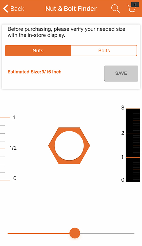 まさに、ホームセンターならではの機能です。ナットとボルトを自宅で実測して、サイズを記録できます。これをECで頼むことも店頭でピックアップすることもできるわけです。ねじ1本なくなったからと我慢して使っている物、買い替えたものありますよね。