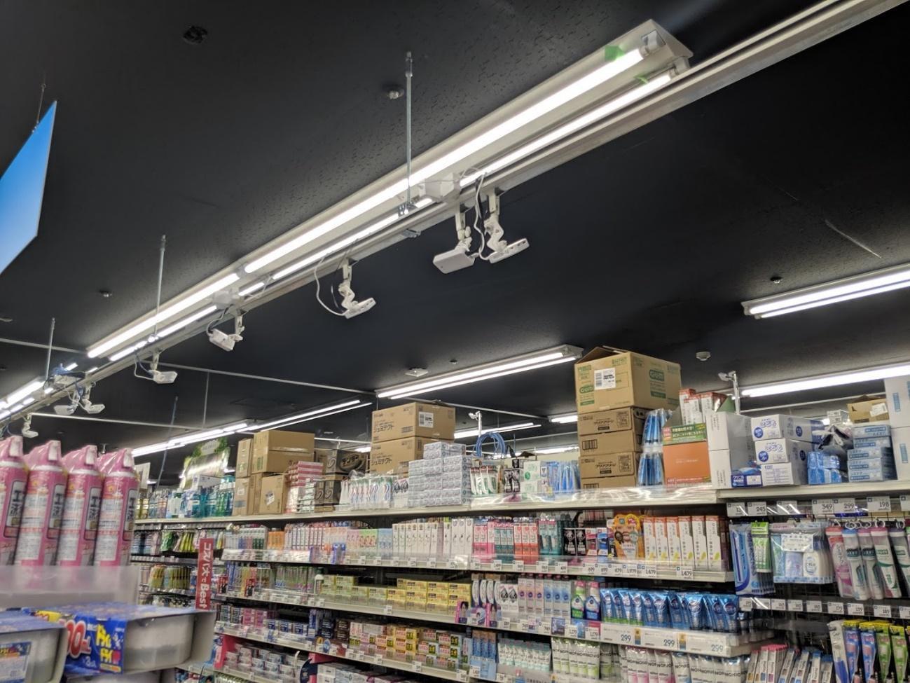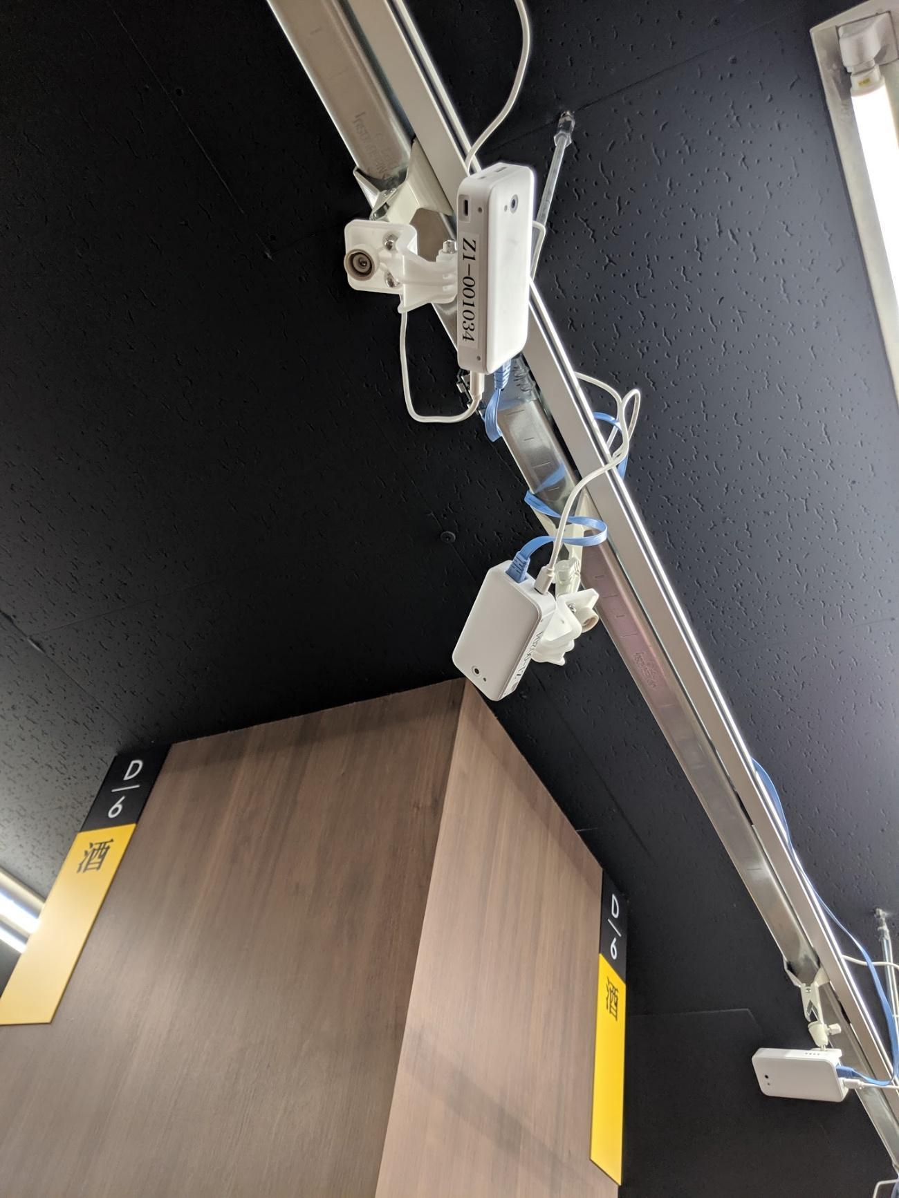 トライアルの天井を見上げると、大量のスマートフォン型カメラ(リテールAIカメラ)が目に入ります。