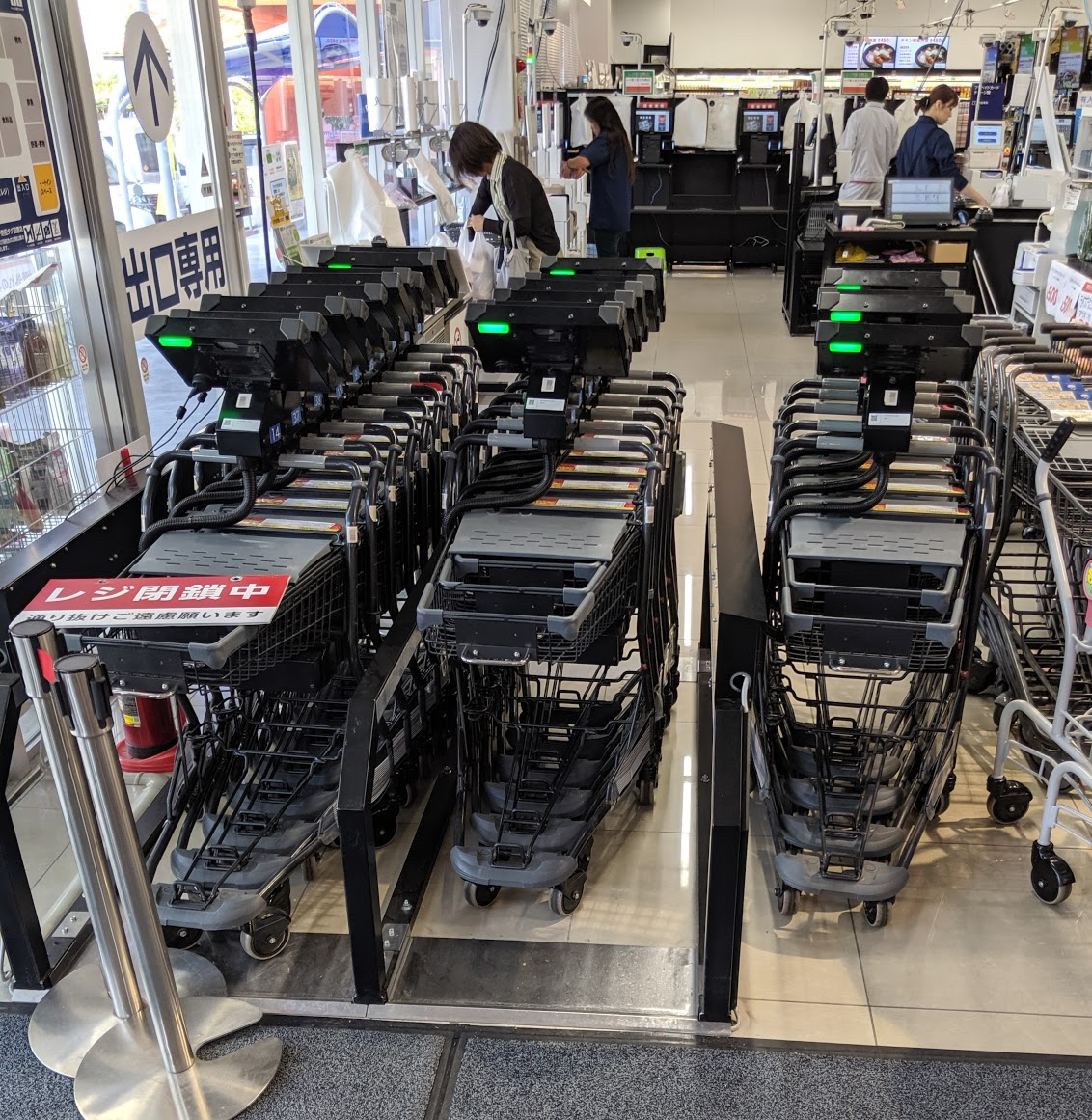私がQuick 大野城店で「なるほど」と思ったことがもう一つあります。それは、入り口の横にあるレジカートです。