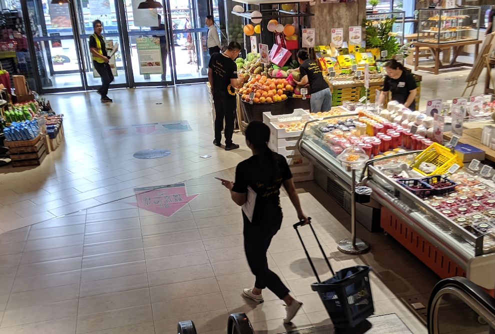 ここもWeChatミニプログラム(アプリ内アプリ)でセルフスキャンして決済する仕組みを導入しており、ノーチェックだった「超級物種」と違って、出入口のガードマンに購入確認をしてもらう方法でした。