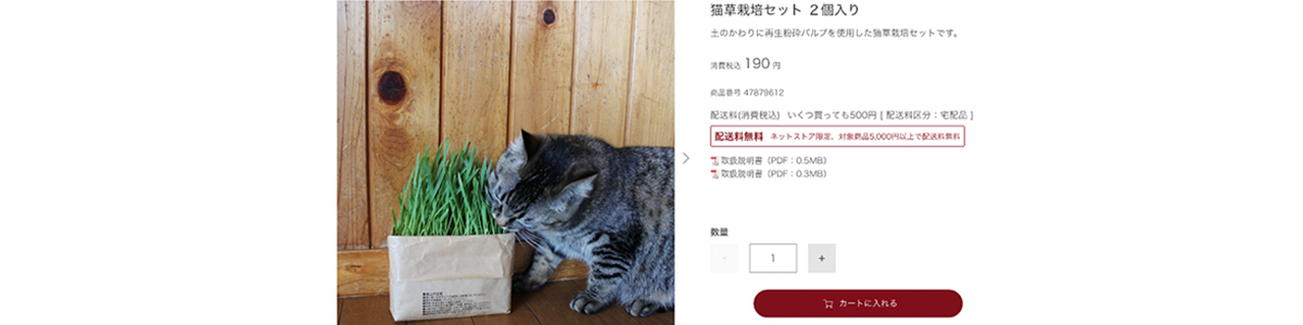 そして、小さなコンビニエンスストア内の超一等地で、通常はほぼ置いていない「猫草栽培セット」を売っているということに衝撃を受けました。