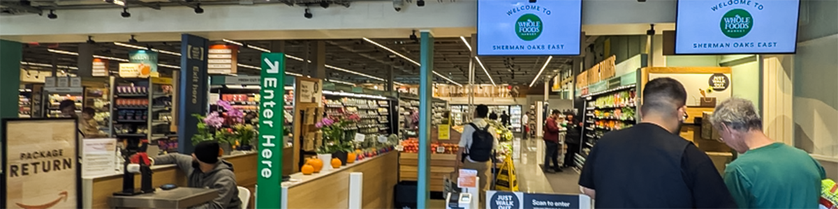 筆者がニューヨークで定点観測する店のひとつが、マンハッタンにあるホールフーズのコロンバスサークル店です。ホールフーズにしてはコンパクトですが、夜間でも大勢の来客がある人気店です。有人レジが30台あっても、常にレジ待ちができています。
