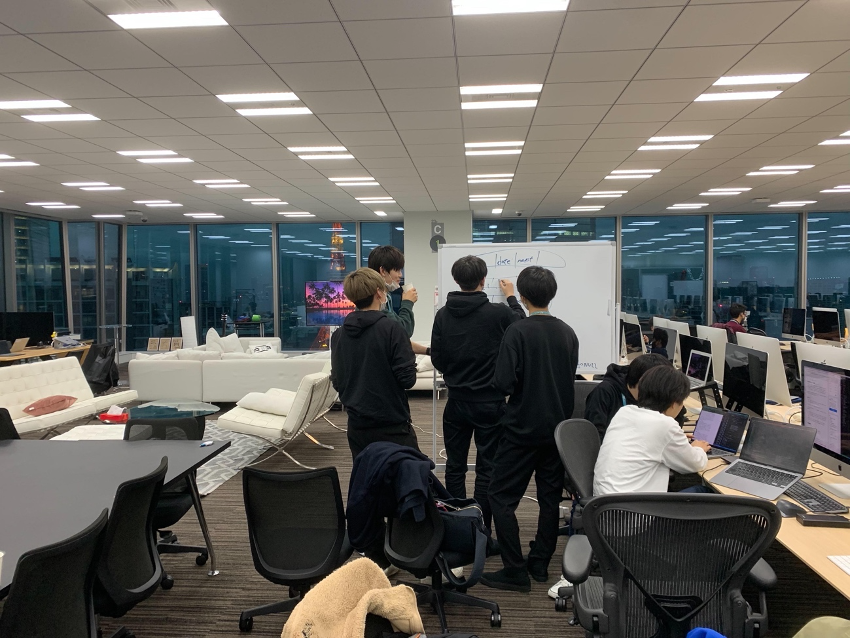 また、課題はひとりで取り組むのではなく、学生同士がお互いに協力しながら取り組みます。いわゆる、「ピアラーニング(学習者同士が、お互いに協力しながら学び合う学習手法)」で、プログラミングの属人的なスキルのみに頼るのではなく、いかに周りとコミュニケーションをとり、助け合って進めていくことができるかを大切にしているプログラムのようです。