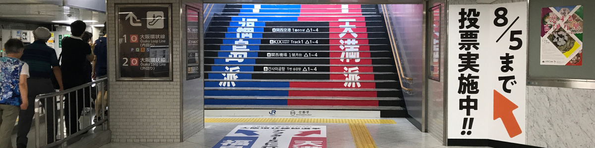 他にも大阪駅の階段で、「アフター5に行くならどっち? 福島派 天満派」という寄り道したい街を選んでもらう人気投票が実施されていました。福島派は青、天満派は赤のペイントが階段に描かれていて、その結果をセンサーで計測してモニターで表示するという企画です。遊び心があって階段の利用者が増えたという大阪人にとって、“おもろい”仕掛けです。