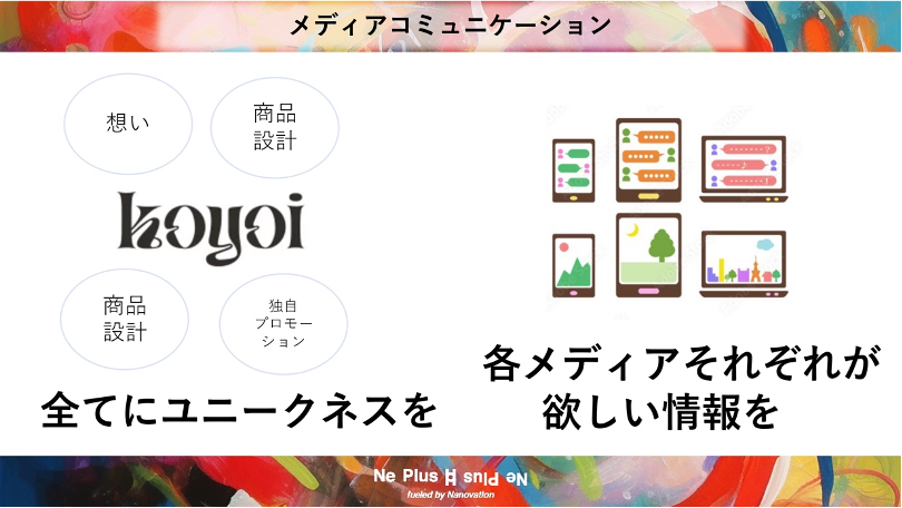 私の給料は20万円くらいで、服はすべて友人から貰っています。それは、お金や時間というリソースをすべて「koyoi」という事業に注ぎたかったからなんです。そこの部分が、番組の担当ディレクターさんと話していて、すごくおもしろいと興味をもってもらえました。私のユニークさをまず取り上げていただいて、そこから会社全体もユニークですよ、といろいろ説明して特集が決定しました。