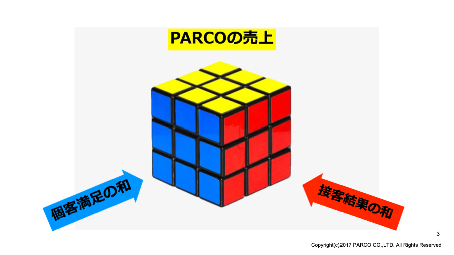パルコの売上は、テナントの売上から成り立っています。これは見方を変えると、各テナントで働くスタッフの皆さんが接客した結果であり、同時に、接客を含む商品やサービスに対するお客さまの満足度の合計でもあるのです。
