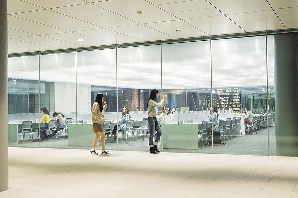近畿大学が2017年に新築した校舎には、女性専用エリアを含む24時間利用可能な自習室があります。試験期間中は、夜中の3時まで勉強する学生や、逆に3時から明け方まで利用する学生もいるようです。電車も動いていないのに、どのように通うのかと尋ねると、近くに住む学生が利用すると言います。