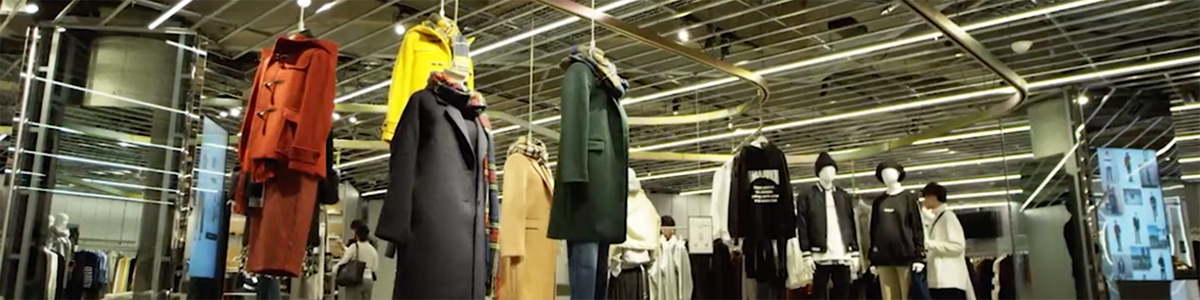 GU STYLE STUDIOの売場面積は約180坪です。同店舗にも設置されているミラー型RFID読み取りサイネージ(オシャレナビ・ミラー)などを設置し、2017年に開店した超大型旗艦店 横浜港北ノースポート・モール店の約820坪に比べると小さいですが、ポップアップストアほど小さくはない標準的な店舗面積です。参考までに同じファーストリテイリング社のユニクロ事業における平均売場面積は約284坪(938㎡)ですので、平均的なユニクロ店舗の2/3のサイズです。