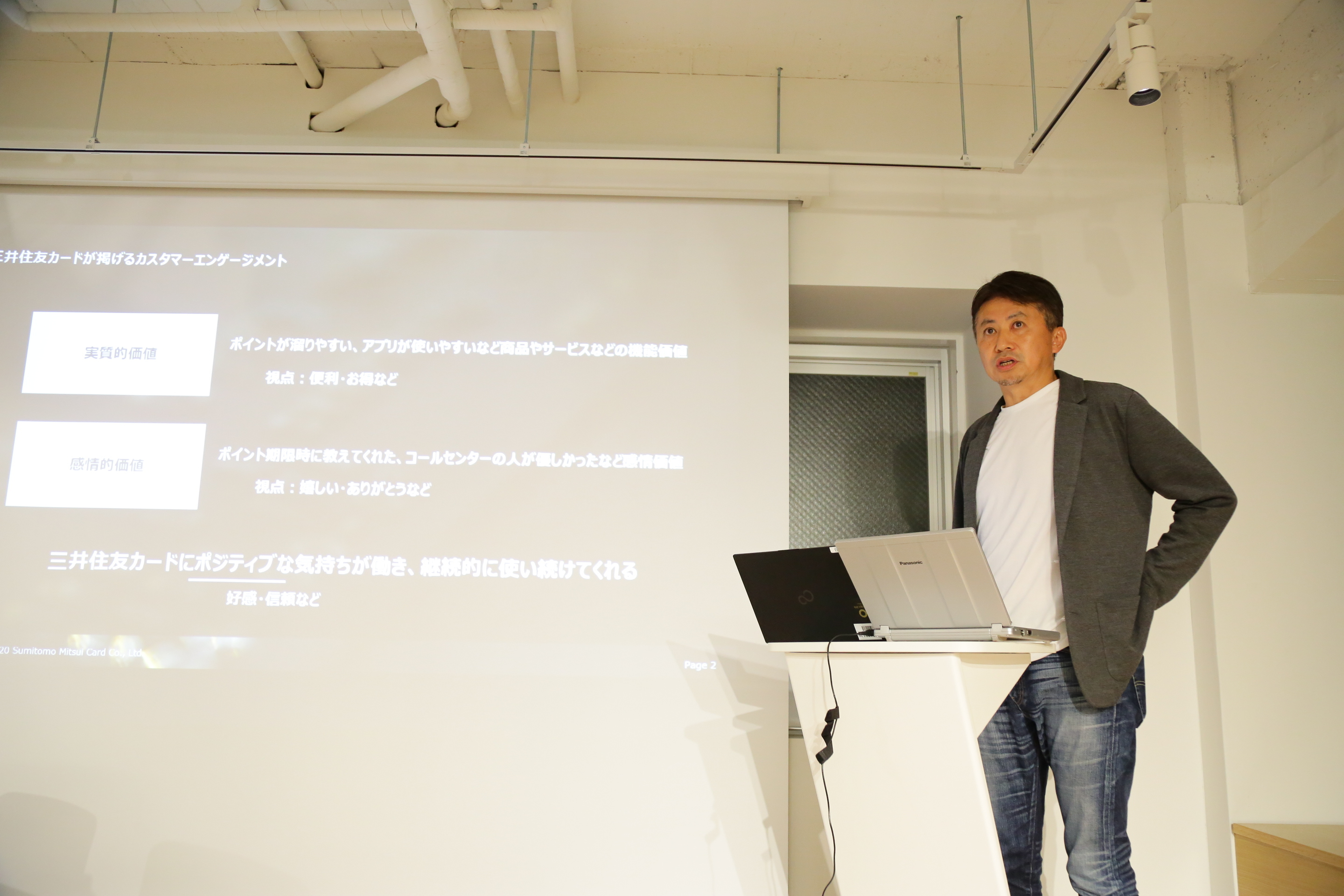 最初に取り組みを紹介してくれたのは、三井住友カード 執行役員 マーケティング本部長の佐々木丈也氏だ。金融カードという無形の商材でカスタマーエンゲージメントの向上に取り組むにあたり、他社を上回る価値を提供することで自社のカードを利用し続けてもらっている状態を、通常の顧客の期待に応えられている状態と定義。そのうえで、カスタマーエンゲージメントが高い状態は、利用が活性化すること、周囲への推奨行為が生まれることであるとして、取り組んでいる。