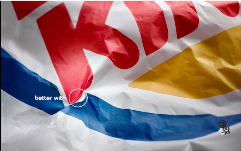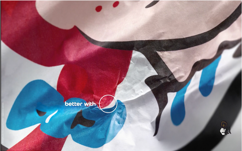 マクドナルドもバーガーキングもウェンディーズも、どのブランドのマークの中にも、ペプシの赤と白と青のマークが隠れているよ、と小粋にグラフィカルに提示してみせました。