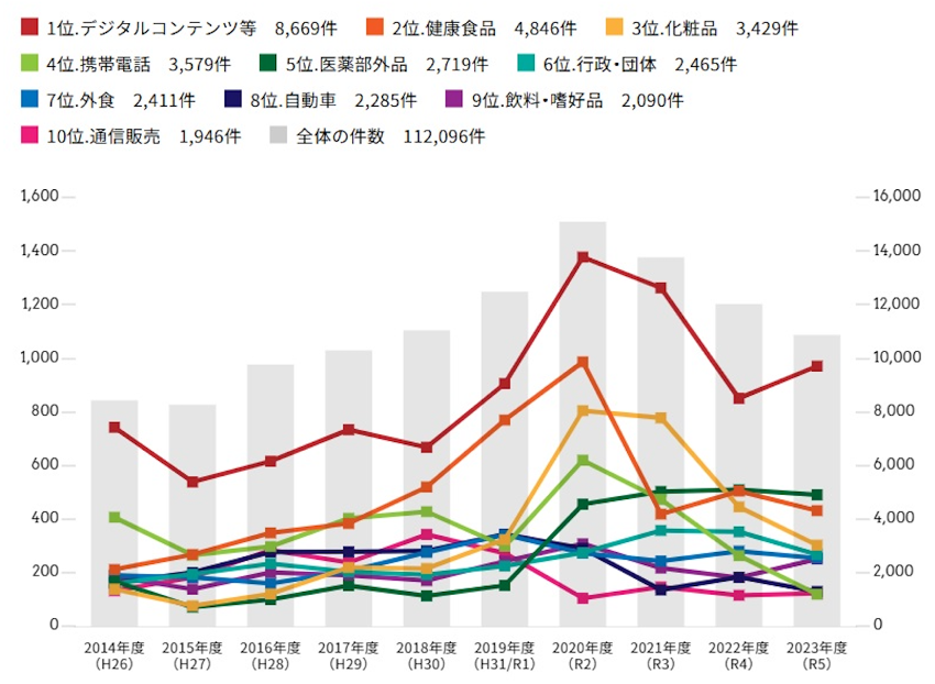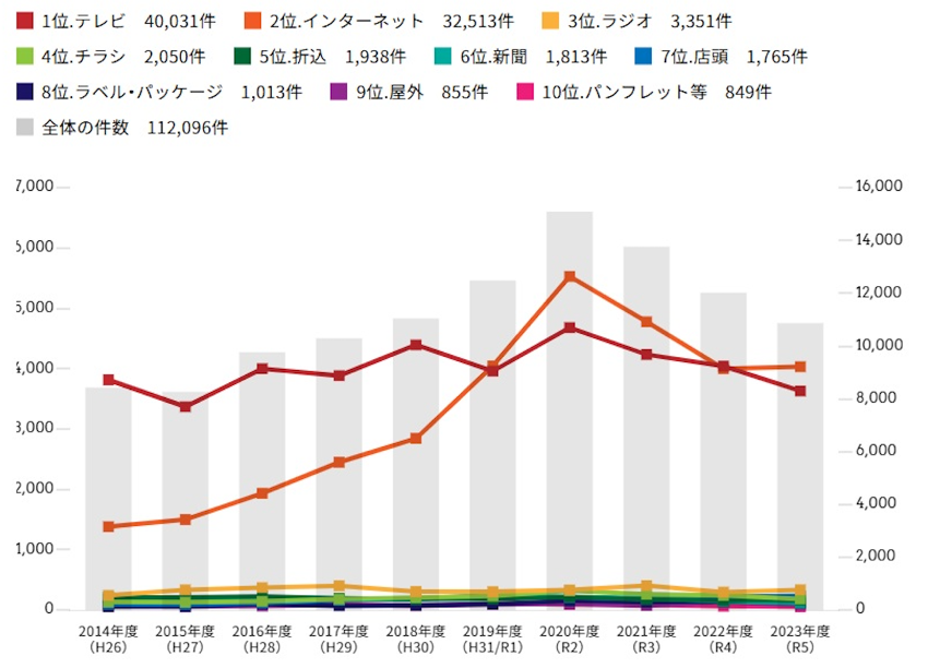 2014~2023年度:ネット広告費がテレビ上回り、不当表示も