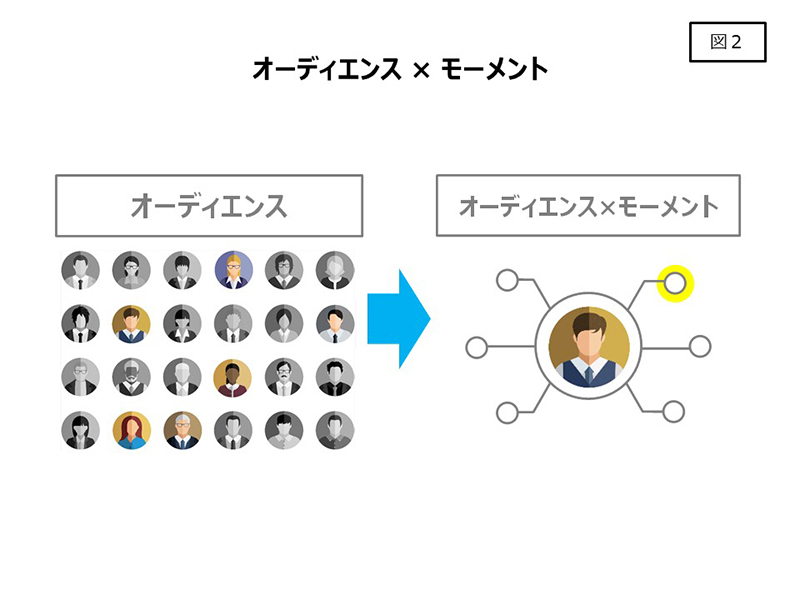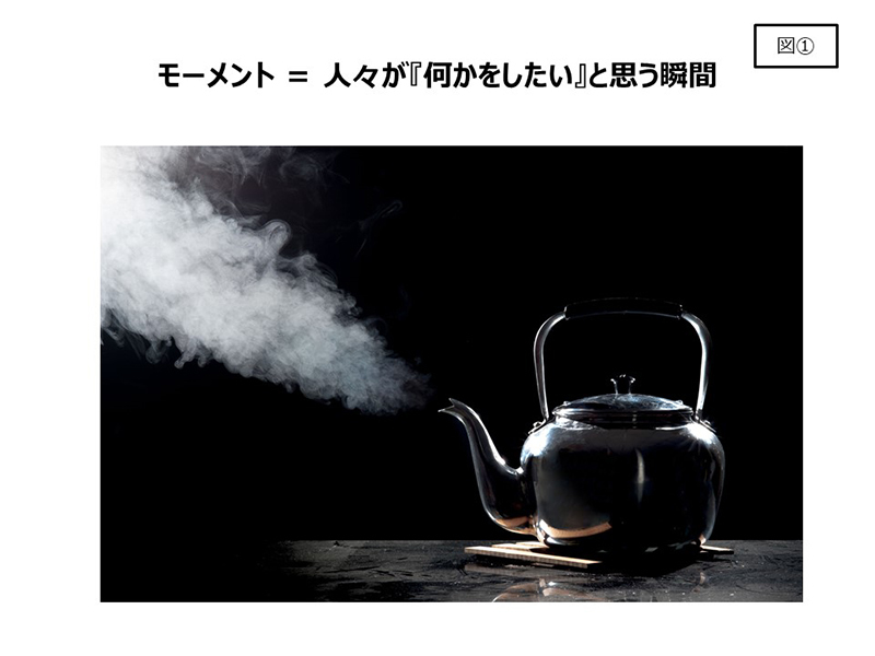 スマートフォンの普及によって、自宅でテレビを見ている時や電車で移動をしている時など、あらゆる場面で瞬時に情報収集が出来るようになりました。Googleはそのような「人々が『何かをしたい』と思い、反射的に目の前にあるデバイスで調べたり、購入したりという行動を起こす瞬間」をMicro-Moments(マイクロモーメント)と定義しました(注1)。すなわち、Moments(モーメント)とは「生活者の商品やサービスに対する関与が非常に高まる瞬間」と捉えることが出来ます。