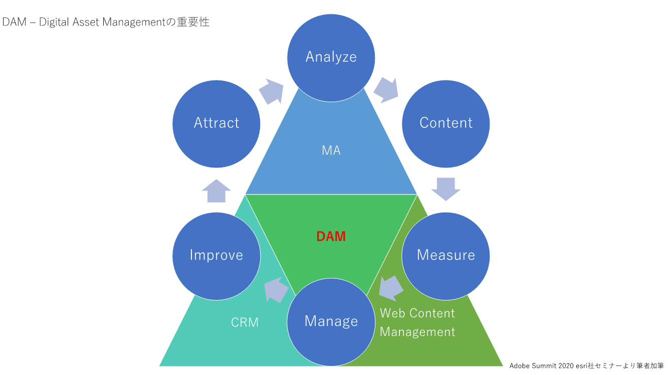 また、今年はContent Velocityの実現に必要なDAM(Digital Asset Management)という仕組みの構築を提唱してくれている。DAMとは、テキスト、動画、写真、カタログデータなどのデジタルコンテンツを、プラットフォーム(Adobe Experience Cloudなど)に一元的に管理することを指す。