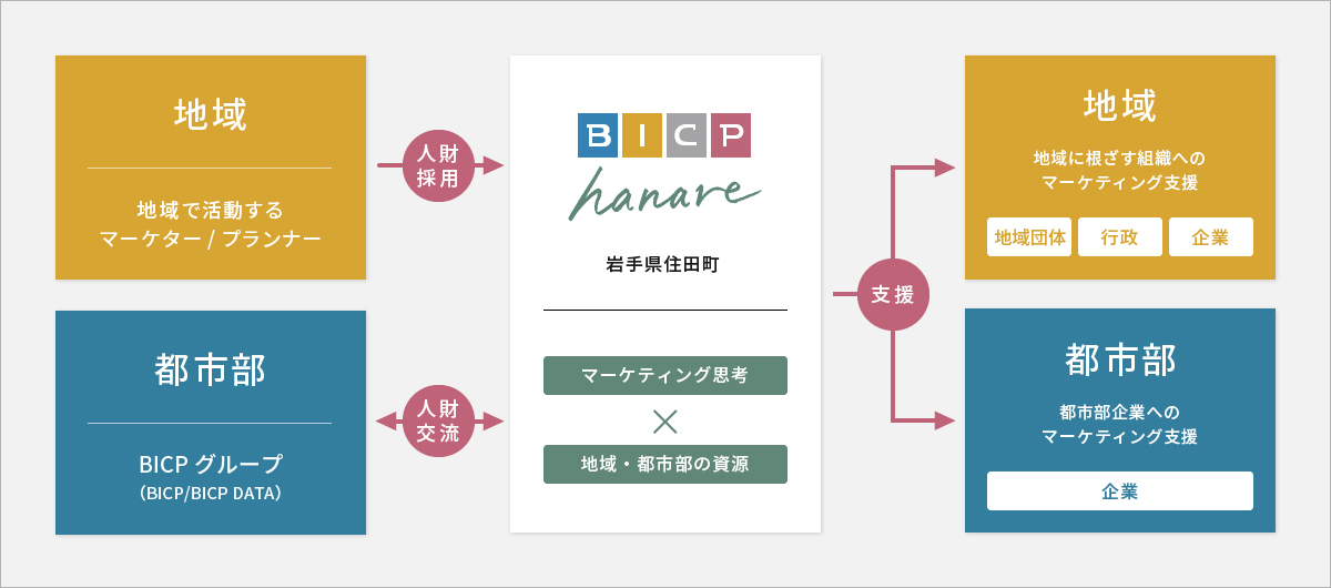 新会社は「マーケティングの力で、地域をもっと豊かに。」というビジョンを掲げ、地域企業、行政、団体の支援を強化していく。BICPグループでの大手企業を中心としたマーケティング戦略、データ活用戦略、チームビルディング、プロジェクトマネジメント支援や、地域の団体や行政、商工会などへの支援を行ってきた強みを活かす。